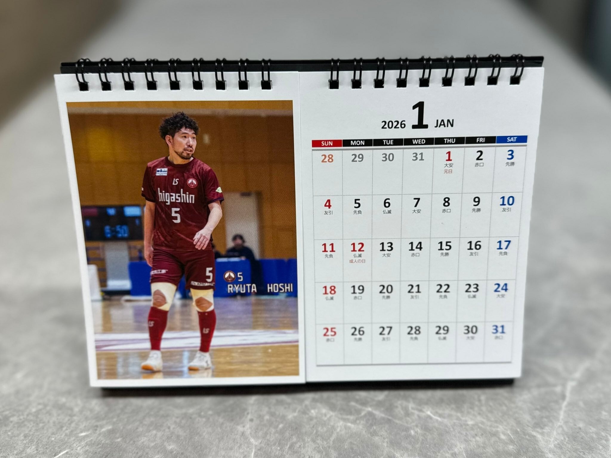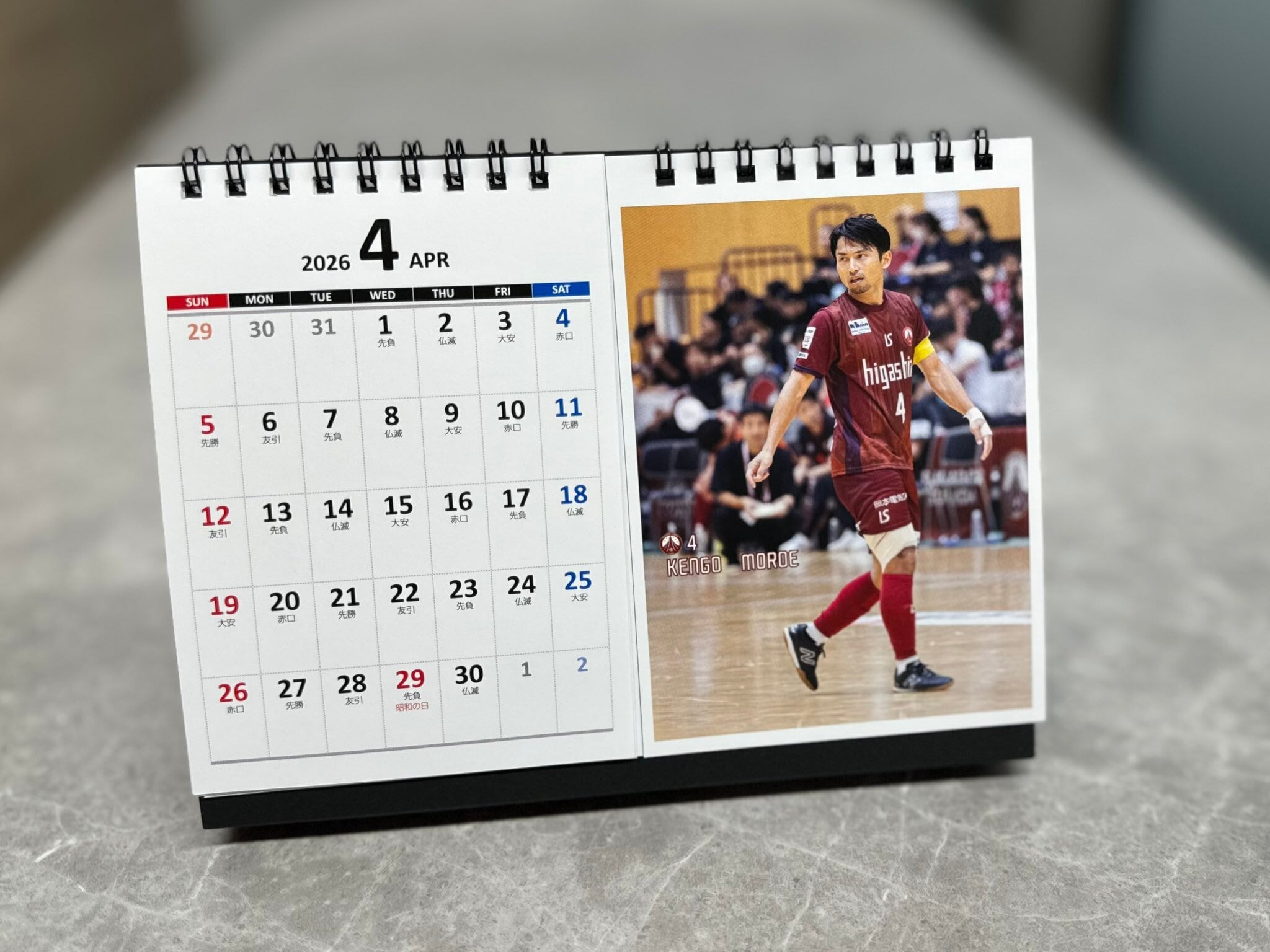 試合中の真剣な表情と躍動感を切り取った、ファン必携の卓上カレンダー。